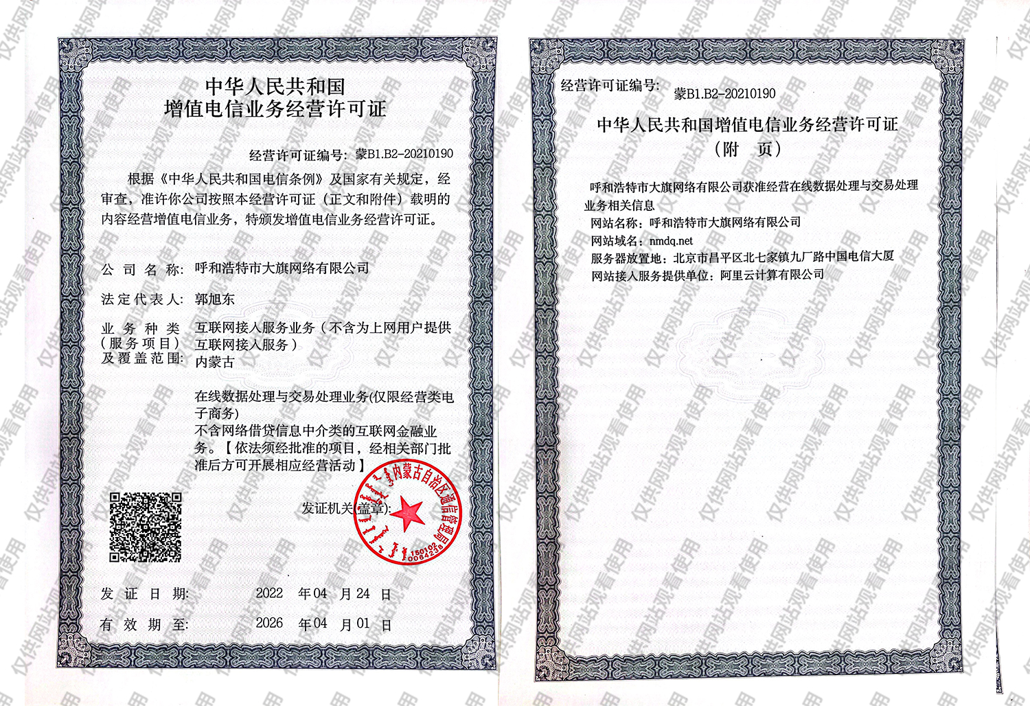 網(wǎng)絡(luò)安全公約協(xié)議5     蒙ICP備20001722號(hào)-5     蒙公網(wǎng)安備 15010502001934    營(yíng)業(yè)執(zhí)照 電信增值許可證 蒙B1.B2-20210190